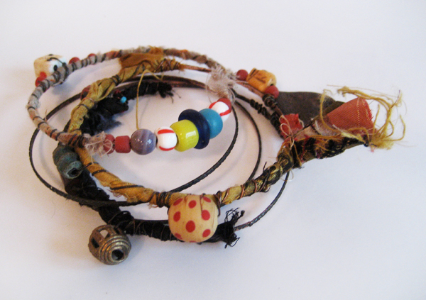 Been seeing these stacks of fun here and there and decided to try my hand. My version has a tribal carnival vibe, all colors and tatters. Some of the goodies included are lovely glass beads, sari fiber from India, brass African bead, vintage glass dice, a pretty piece of driftwood, a bone skull and a […]