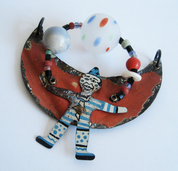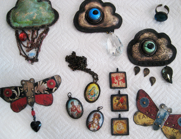 Taking a break from an intense day in the studio to survey my progress and share it with you. This is Lawrence Moth, one of about 5 that are in various stages of completion. He’s a brooch with a slightly shorter wingspan than the necklace version. This is heavy duty old tin, tough to cut! […]