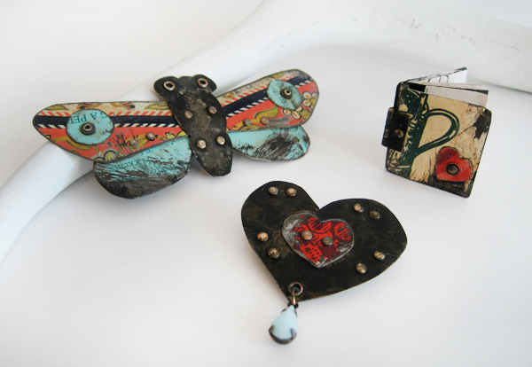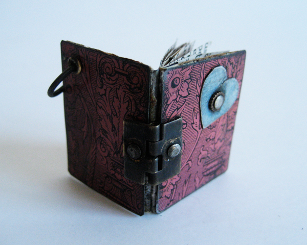 I have loved miniatures since I was a child. BFF, Amy, will likely remember our mutual love of collecting all things lilliputian, and to this day I am still drawn to dollhouse furnishings and other teenies. I made this tiny book charm yesterday, it is only about 1.25 inches tall. Reclaimed tin and newspaper; the […]